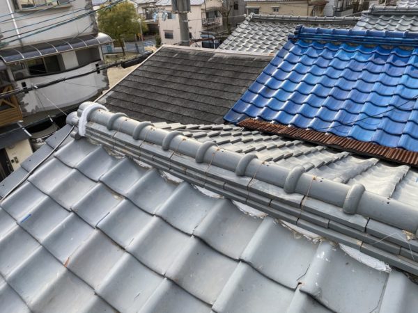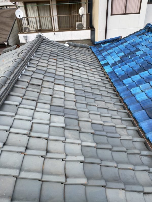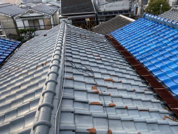 今回工事させて頂いた屋根は地瓦の凍て割れが多く新しい瓦に差し替えをさせて頂きました。