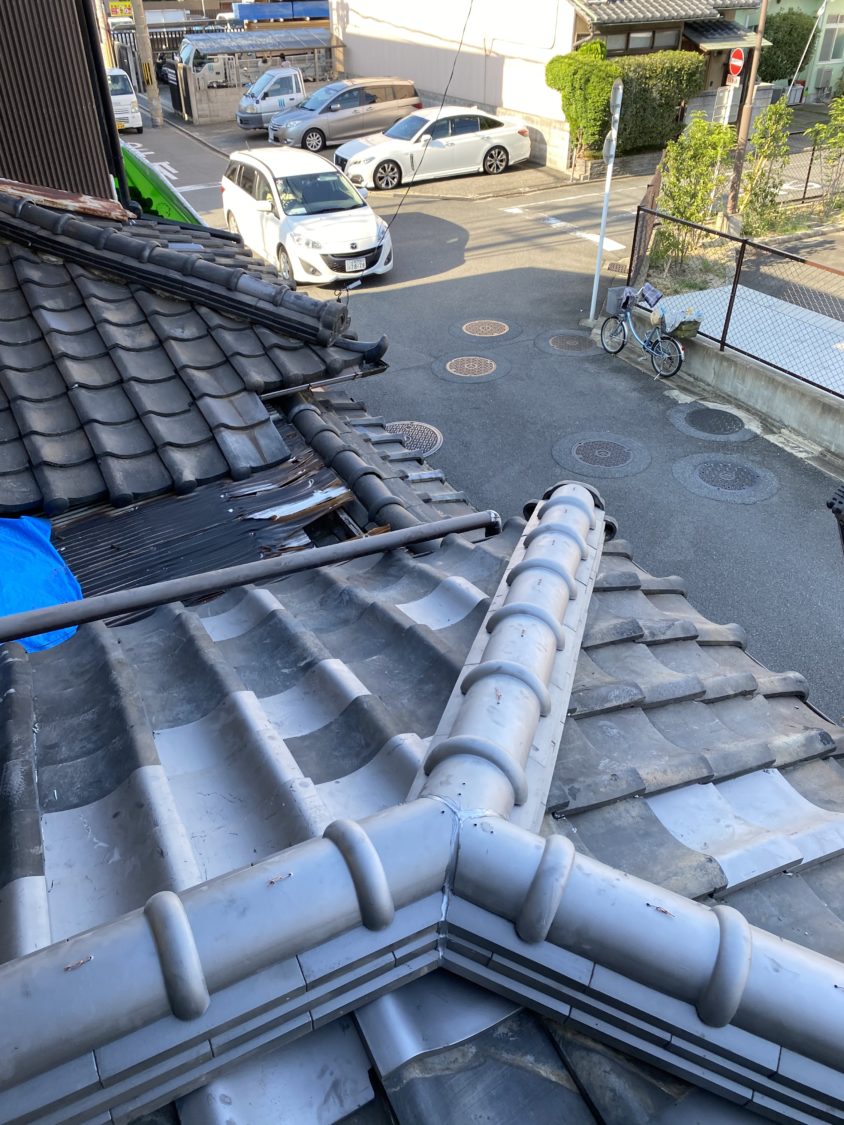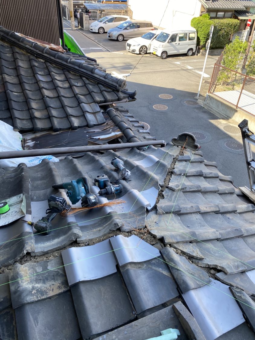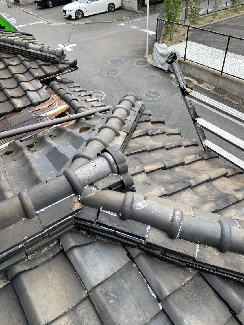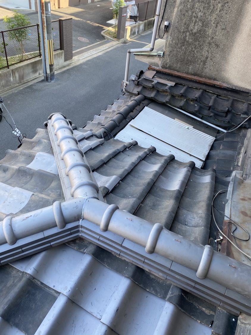 地震などの影響で棟が崩れ幅が広くなってしまい雨漏れを起こしてしまっていた為