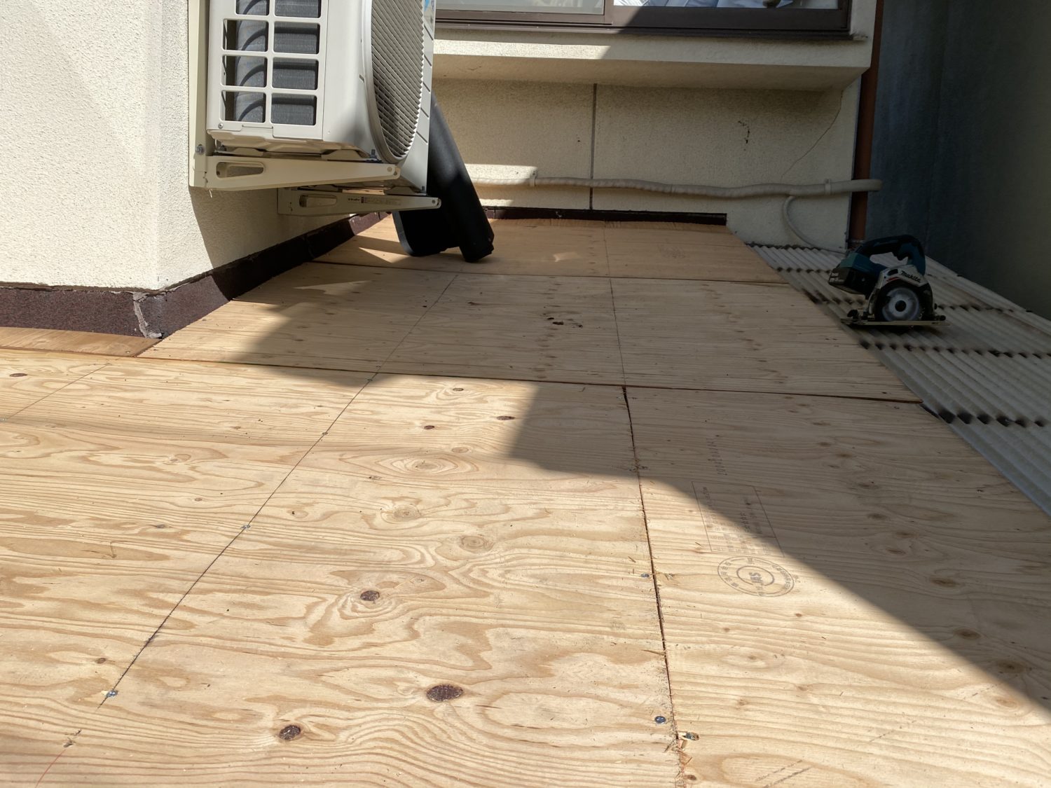 強度を出すためにシングル葺きの上から構造用合板の9ミリを張り防水シートを張り雨の侵入を二次防水します。