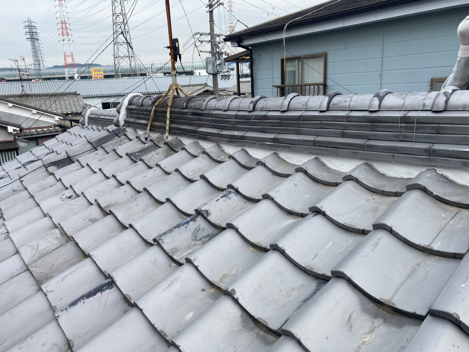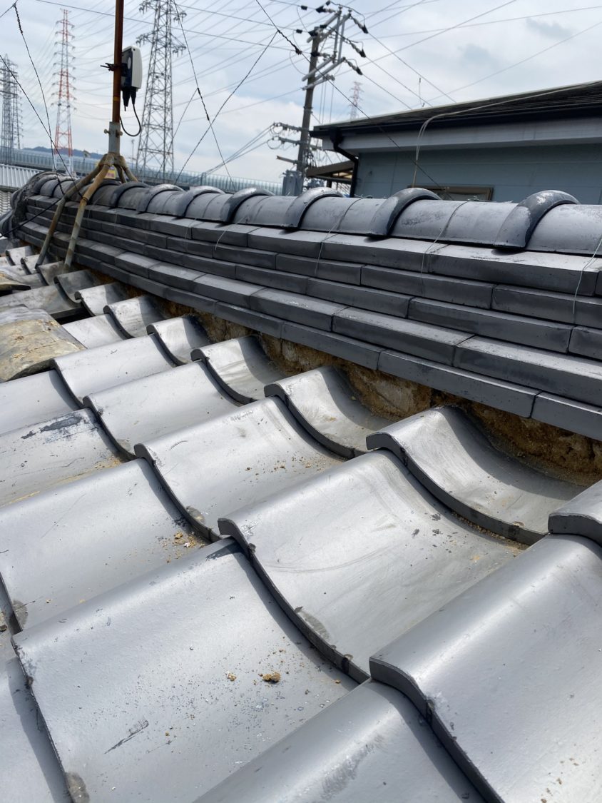 めくった瓦を銅線できっちりと止めていき復旧していき完成です。