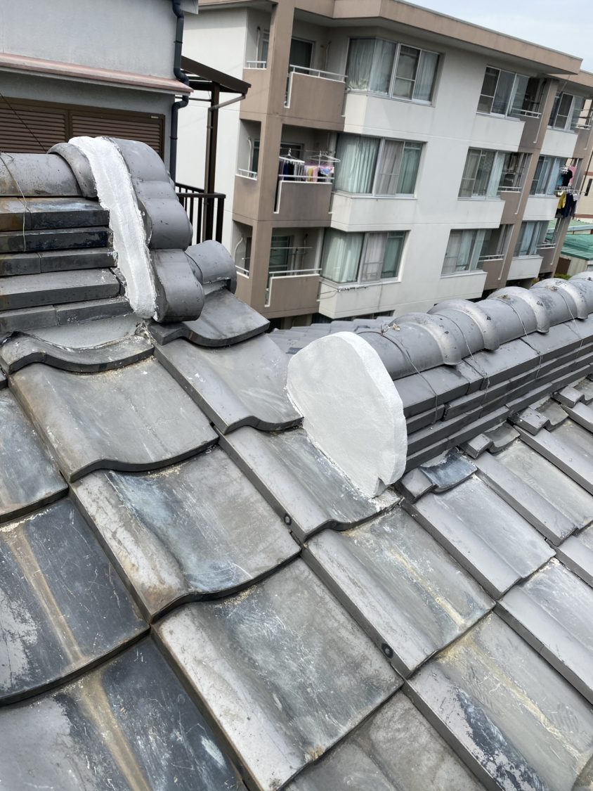 今回は棟の面戸漆喰工事をさせて頂きました。