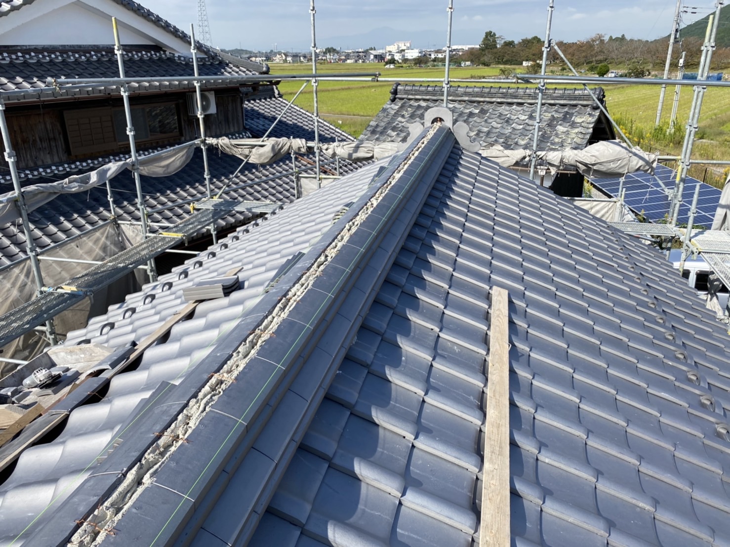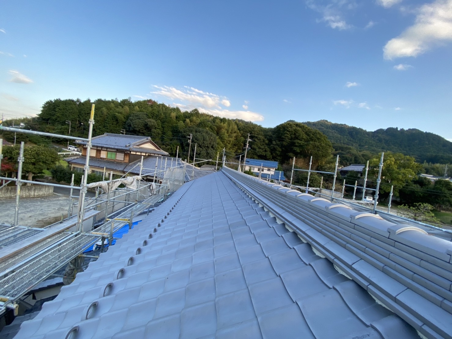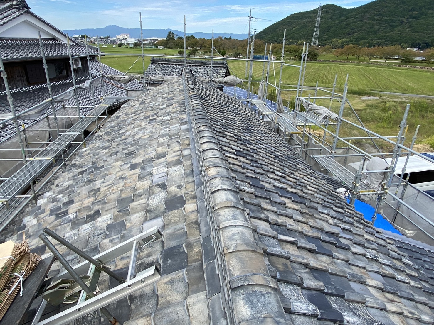 既存の瓦は約80年程の瓦でかなり年季の入った瓦の癖がすごく、当時の職人さんも苦労されたのではないかと思います。