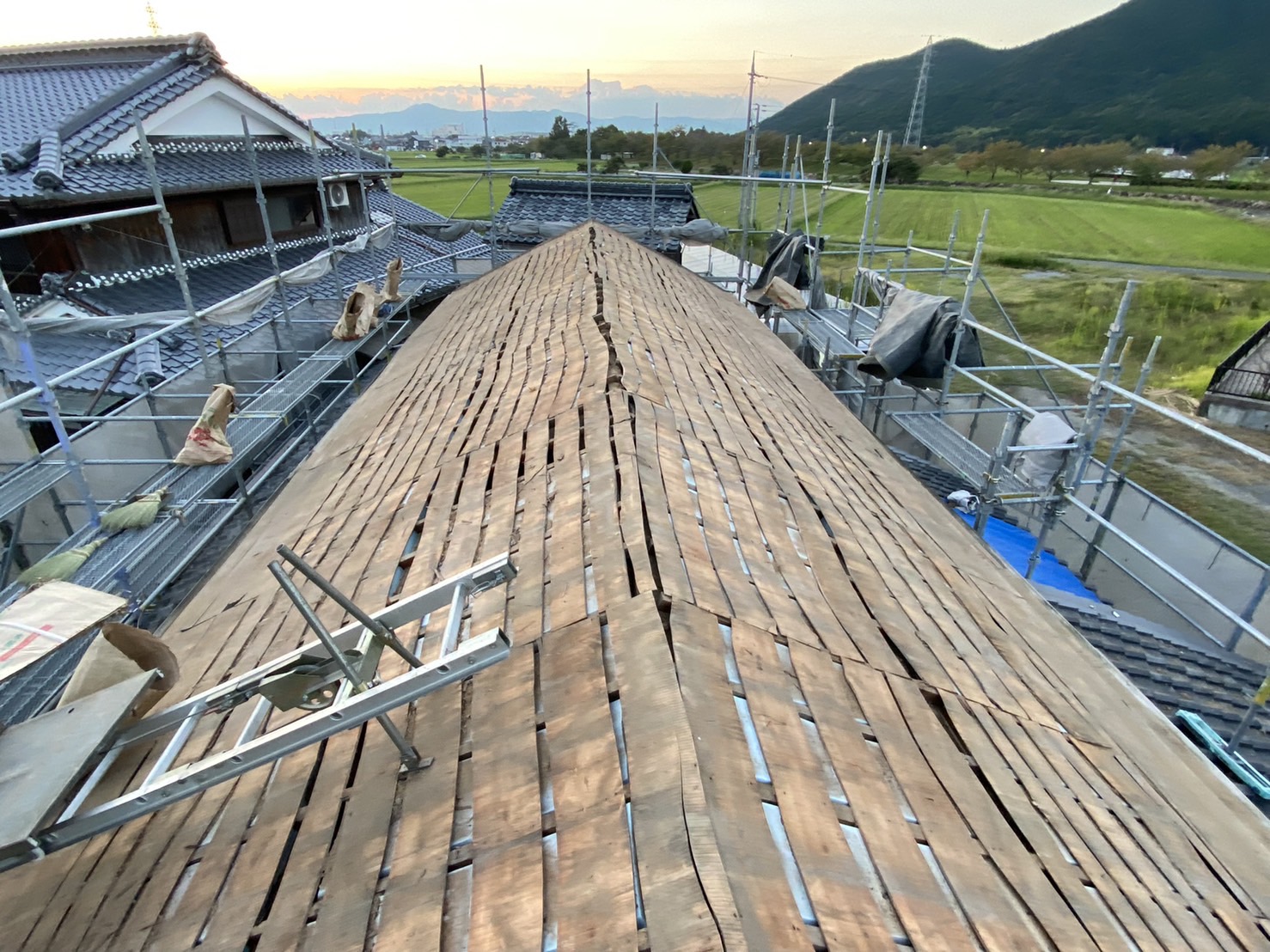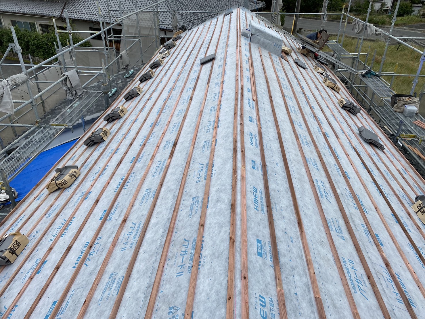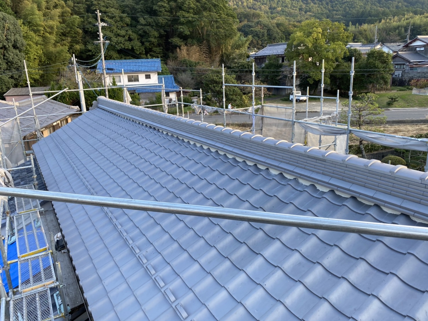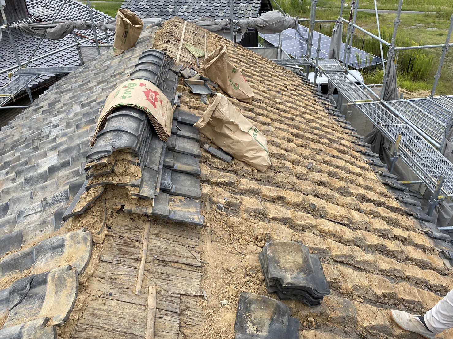 既存の瓦は約80年程の瓦でかなり年季の入った瓦の癖がすごく、当時の職人さんも苦労されたのではないかと思います。