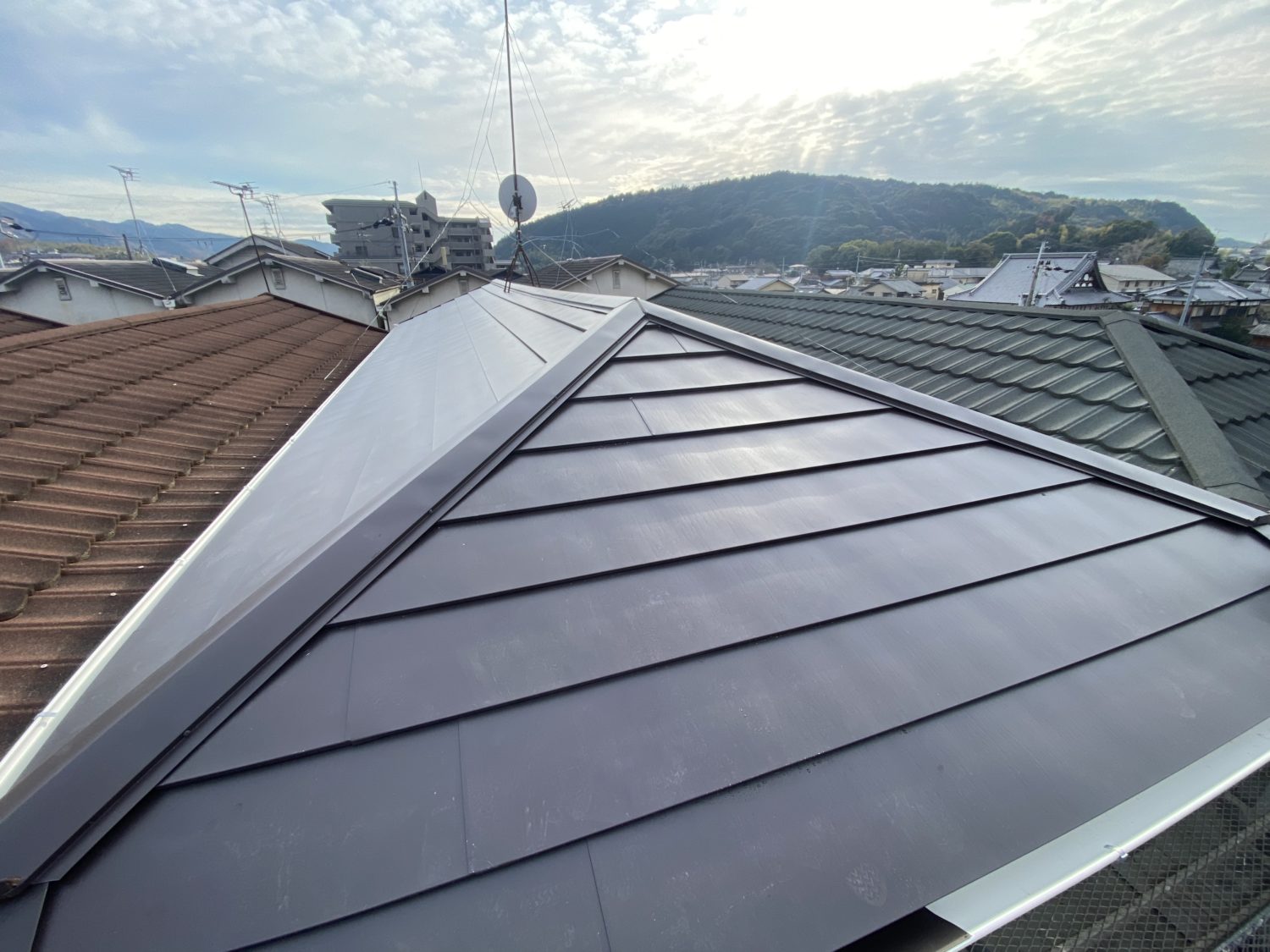 最近地震が多く少しでも屋根を軽くしたいとのご依頼が多くガルバリウム鋼板材での施工が大変多いですが、暑さを気にされるお客様も多いです。