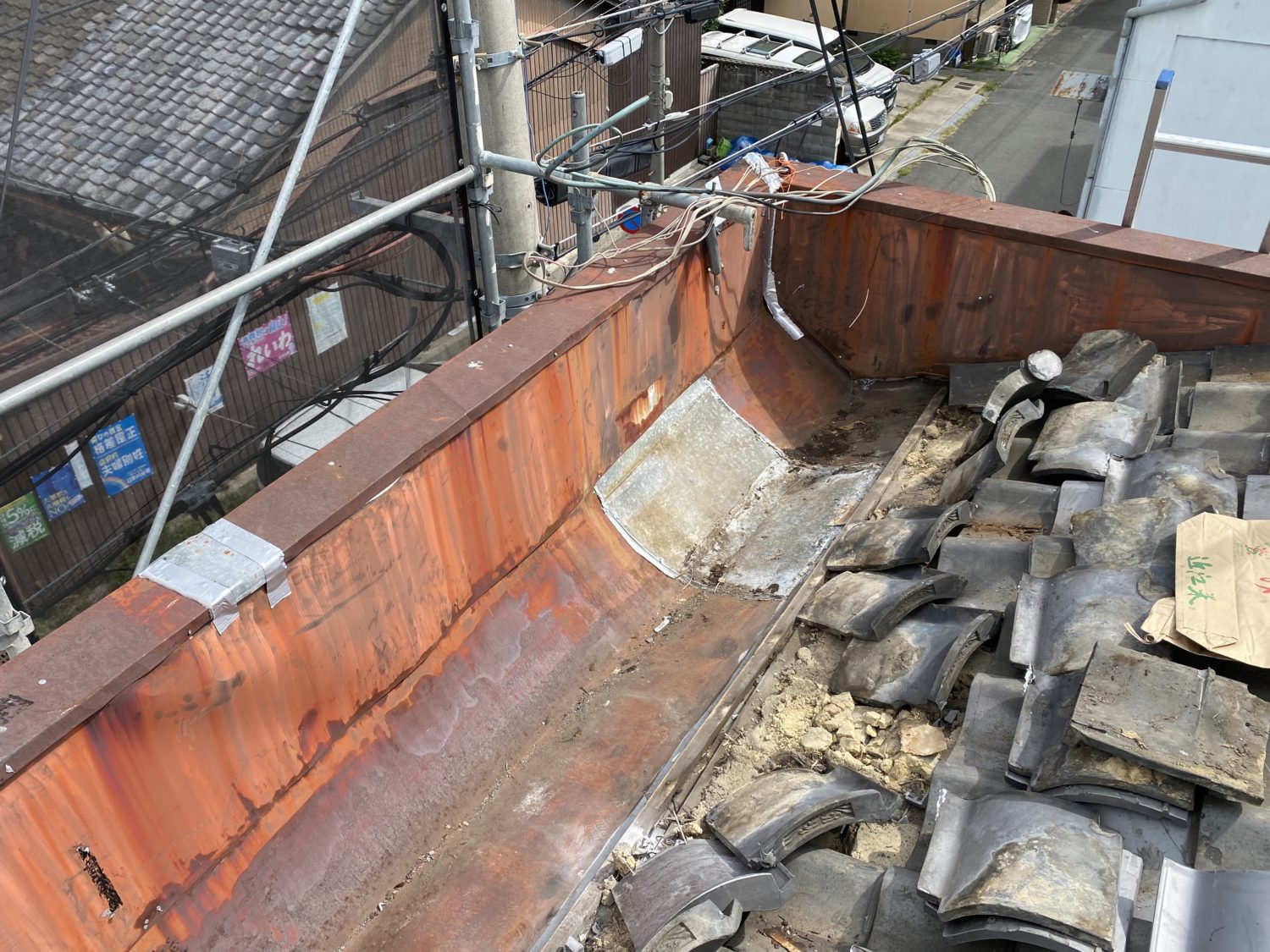 この谷樋はとても高度な板金加工技術が必要な所ですが、ここは腕の見せ所と言わんばかりに、喜んで現場加工し施工取り付けさせて頂きました。
